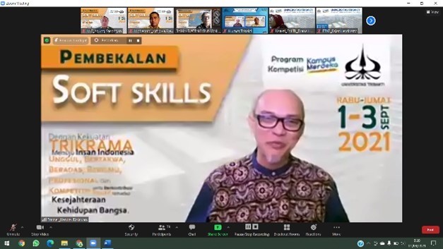 Pembekalan soft skill utamanya dilaksanakan untuk mahasiswa dari program studi Teknik Industri, Teknik Sipil, dan Teknik Perminyakan. Namun demkian Usakti membuka peserta di luar tiga program studi tersebut, bahkan ada peserta dari perguruan tingg lain. Pembekalan softskill dilaksanakan pada tanggal 1, 2, dan 3 September 2021 secara daring. Jumlah peserta sebanyak 54 mahasiswa yang terdiri dari 32 peserta mahasiswa Universitas Trisakti dan 32 mahasiswa dari luar Usakti